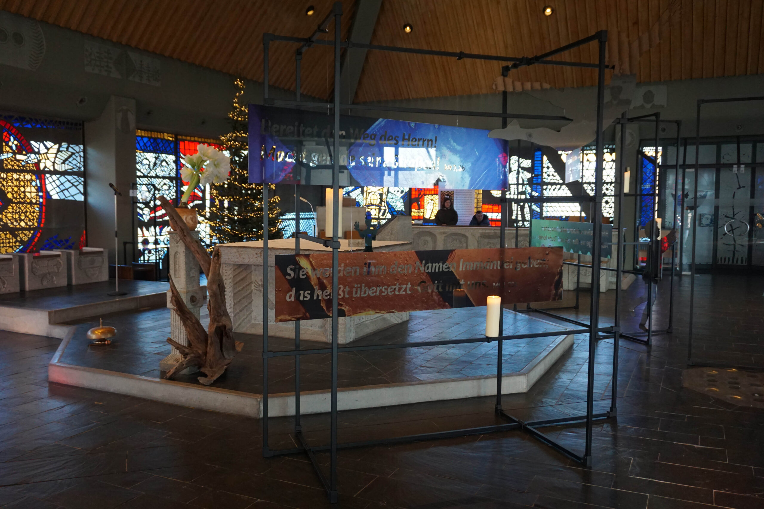Crkva sv. Kristofora građena je od 1976. do 1978. godine prema nacrtima arhitekta Friedricha Zwingmanna, a svečano je posvećena 23. srpnja 1978. godine. Cjelokupna umjetnička koncepcija i izvedba djelo je prof. Emila Wachtera, koji je kroz reljefe, staklene elemente i skulpture stvorio prostor bogat simbolikom i duhovnim značenjem.