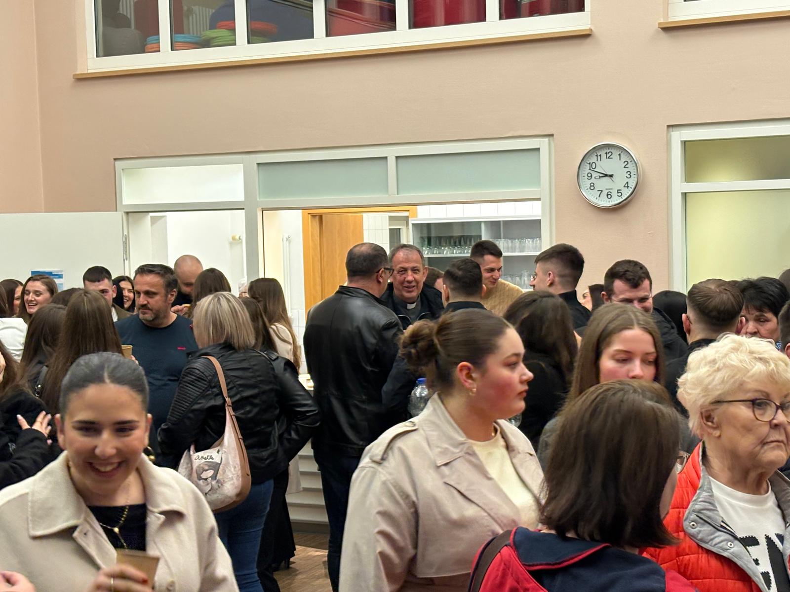 Nakon duhovnog programa okupili smo se u dvorani na druženju. Mladi su pripremili vafle, a uz glazbu, razgovor i smijeh sve je prošlo u jako lijepom i prijateljskom raspoloženju.