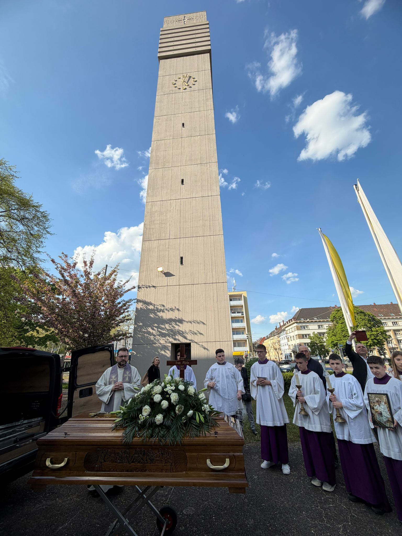 U petak, 17. travnja 2026., u crkvi sv. Mihaela u Karlsruehu, slavljena je sveta misa zadušnica i svečani ispraćaj dugogodišnjeg voditelja misije Karlsruhe, svećenika Krčke biskupije vlč. Ivana Plješe, koji je, okrjepljen sakramentima, preminuo 10. travnja 2026. u Karlsruheu. Misu je predslavio delegat Dušobrižništva za Hrvate u Njemačkoj fra Petar Klapež, a s njim su u zajedništvu bila još osmorica svećenika: don Tihomir Šutalo, don Sebastijan Marković, don Stjepan Matijević, don Janko Belina, don Ivo Nedić, vlč. Jure Kopić, vlč. Robert Ružić i fra Filip Mimica, te mnogobrojni vjernici.