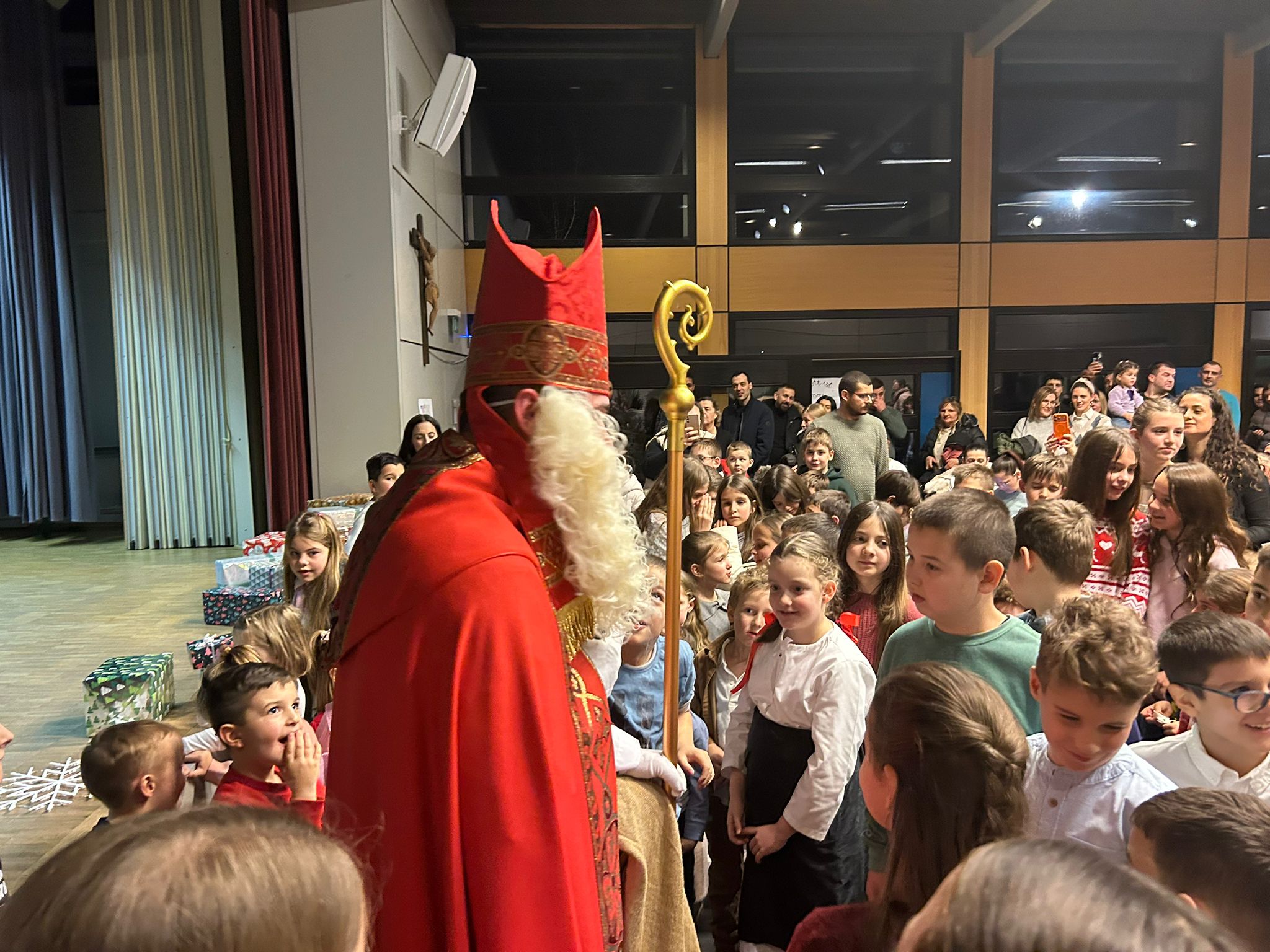 U blagdanskom programu sudjelovali su učenici hrvatske nastave i vjeronauka iz Karlsruhea, koje su pripremile Antonija Pavlović – učiteljica hrvatske nastave i vjeroučiteljica Sanja Gluhak. Djeca su izvela zanimljiv program s recitacijama o Božiću, novoj godini i, naravno, omiljenom dječjem svetcu, svetom Nikoli.
