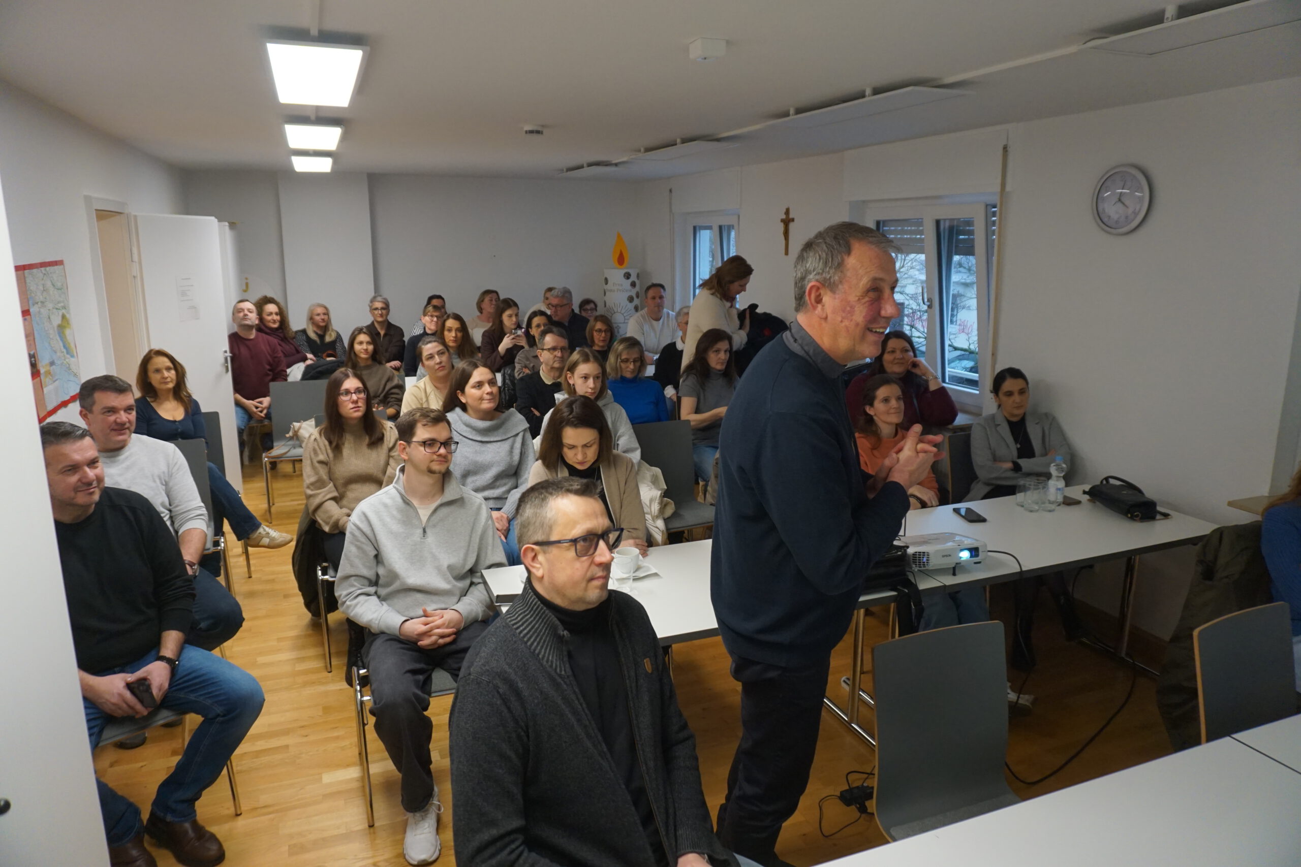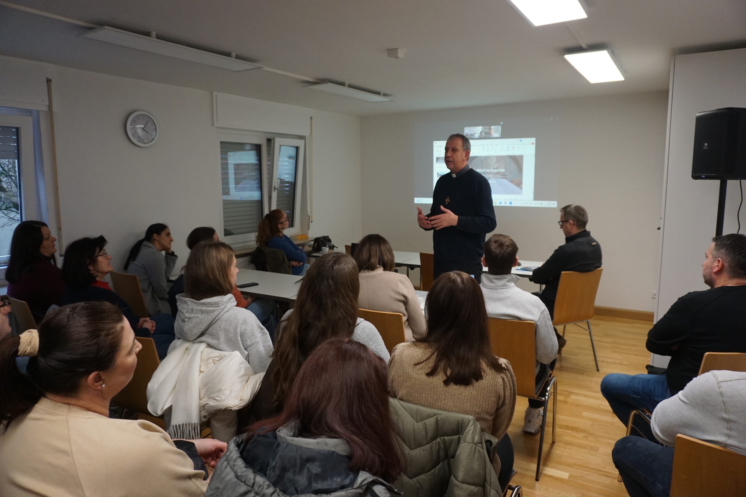 Predavanje je putem videoveze održao dr. Igor Kanižaj, profesor komunikologije na Hrvatskom katoličkom sveučilištu, angažirani laik i voditelj grupe liturgijskih čitača u Župi Duha Svetoga na zagrebačkom Jarunu. Na početku susreta okupljene je pozdravio voditelj Misije don Tihomir Šutalo, predstavio predavača te je program započeo zajedničkom molitvom.